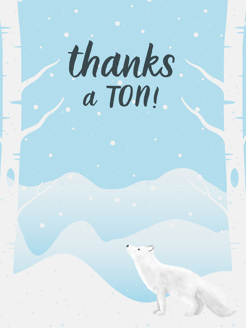 Send a special message of gratitude with the purchase of our "Thanks a Ton Arctic Fox" card that also takes action for the climate. Thanks a Ton greeting cards include the gift of carbon dioxide removal from the atmosphere and oceans. Select the method and the price point to remove carbon dioxide by the kilos or the ton. Planet Earth thanks you.